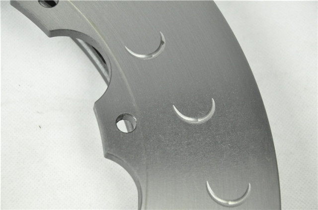 劃線碟可以提高摩擦性能,減輕重量,清理粉塵。而且在同等的極端條件下,劃線碟的機(jī)械強(qiáng)度會高于打孔碟。打孔碟的小孔破壞了剎車碟的完整性,影響了剎車碟的機(jī)械硬度。所以打孔碟出現(xiàn)裂紋的機(jī)率比劃線碟要高。而且劃線碟還有警示作用,當(dāng)花紋被磨平時(shí)就該更換剎車碟了,這是打孔碟不能做到的。