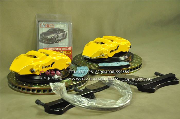 奧迪A3運動與動態,高超的技術和高質量的訴求:從第一次驅動這款車,奧迪A3駕駛者就將它所有特性珍藏。由于它設計者十分努力地重視每個細節,現在奧迪已經可以讓這款緊湊型車擁有更多的力量,同時融合了它的外觀造型以及其人體工程學。搭配alcon 六活塞大小活塞分布,在踩下剎車踏板時,力度發揮更加均勻,行駛過程中更安全,剎車卡鉗利用鋁合金作為鑄造整體活塞卡鉗結構,能用來增強剛性及減低重量。本公司提供多種顏色鉗,滿足車主的不同要求,質量保證,誠信至上。